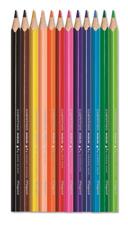 Akvarell ceruza készlet, háromszögletű, ecsettel, MAPED "Color'Peps", 12 különböző szín leírása