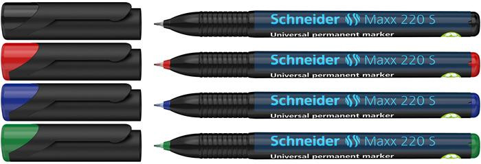 Alkoholos marker készlet, OHP, 0,4 mm, SCHNEIDER "Maxx 220 S", 4 különböző szín
