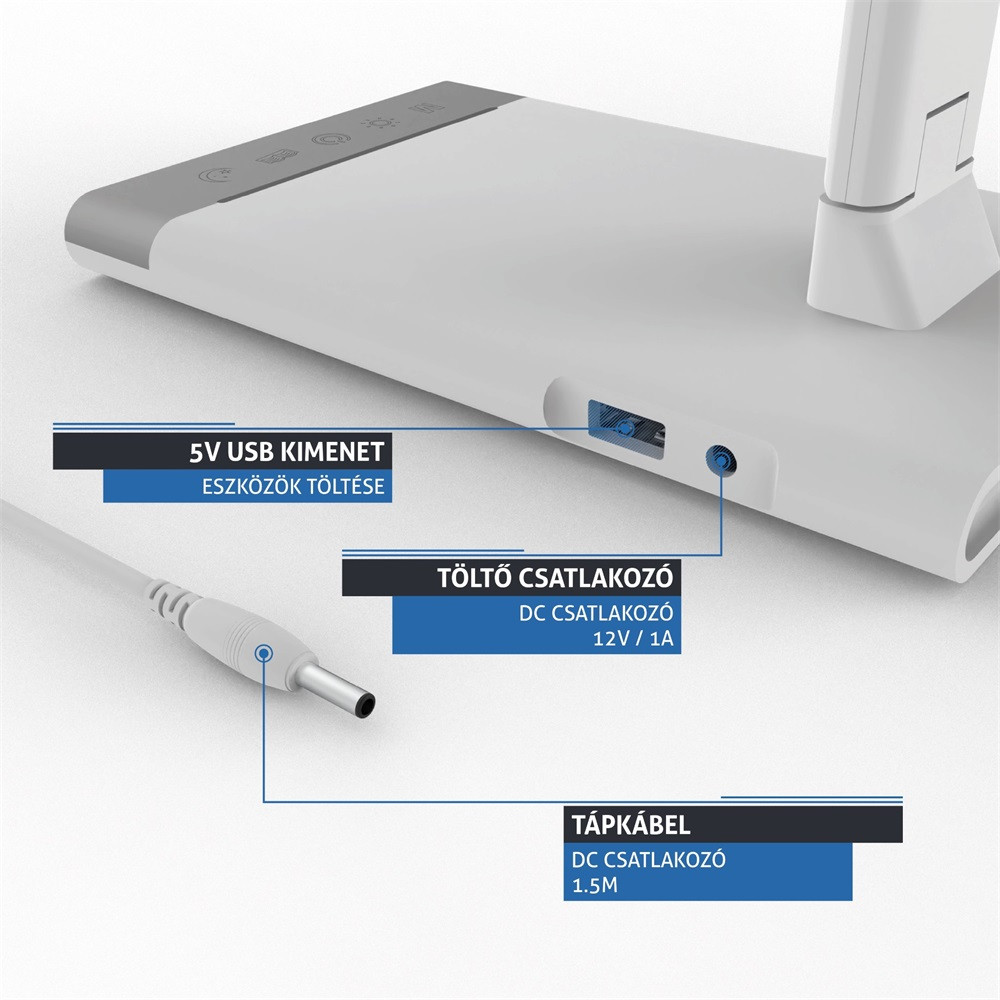 Modern és stílusos asztali lámpa, amely tökéletes kiegészítője lehet bármely otthonnak vagy irodának. A lámpa fehér színű, ami elegáns és letisztult megjelenést kölcsönöz a térnek. Erős 12W LED fényforrással rendelkezik, amely kellemes és meleg fehér fényt biztosít. A LED technológia energiatakarékos és hosszú élettartamú, így nem csak környezetbarát, de hosszú távon is költséghatékony megoldást nyújt. Fényerő állítható, így könnyedén beállíthatod a megfelelő és irányt a személyes igényeid szerint. A lámpa nyakának rugalmas kialakítása lehetővé teszi, hogy a fényt pontosan oda irányítsd, ahol szükséged van rá.