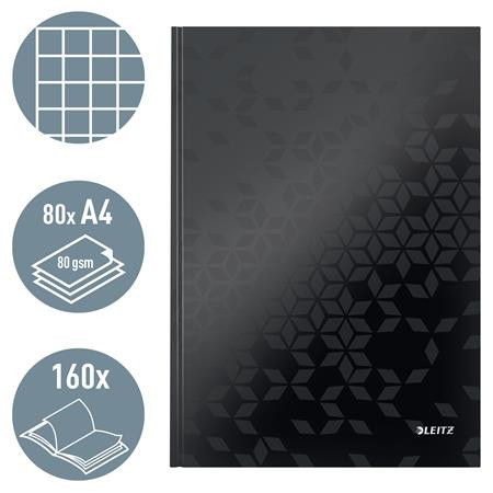 Beíró, A4, kockás, 80 lap, keményfedeles, LEITZ "Wow", fekete leírása