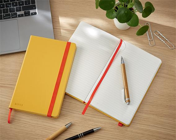 Beíró, A5, vonalas, 80 lap, keményfedeles, LEITZ "Cosy Soft Touch", melegsárga leírása