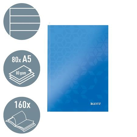 Beíró, A5, vonalas, 80 lap, keményfedeles, LEITZ "Wow", kék leírása