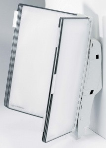 - a bemutatótáblák egy erős műanyag forgórésszel ellátva illeszkednek a falitartóba