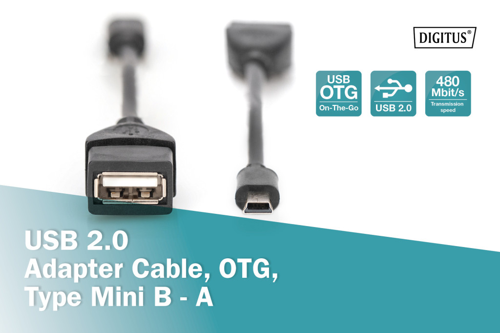 DIGITUS AK-300310-002-S OTG 2.0 mini USB-B - USB-A anya adapter