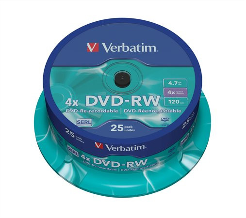 DVD-RW lemez, újraírható, 4,7GB, 4x, 25 db, hengeren, VERBATIM