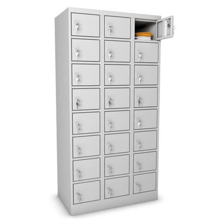 Értékmegőrző fémszekrény, 24 rekeszes, szürke