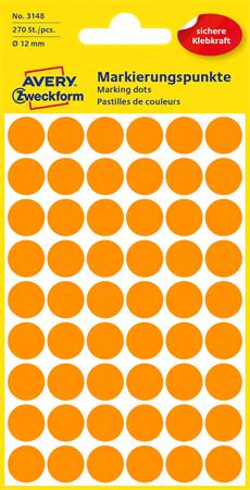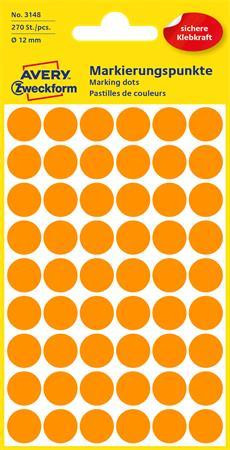 Etikett, 12 mm, kör, AVERY ZWECKFORM, neon narancs, 270 etikett/csomag leírása