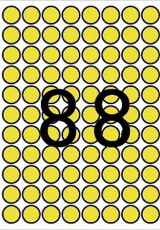 Etikett, 16 mm kör, színes, A5 hordozón, APLI, sárga, 704 etikett/csomag