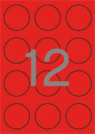 Etikett, 60 mm kör, színes, APLI, neon piros, 240 etikett/csomag