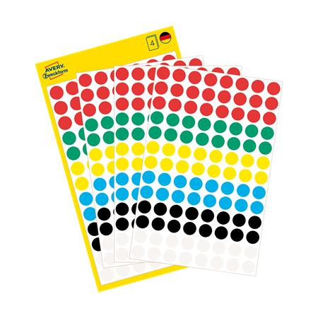 Etikett, 8 mm, kör, AVERY ZWECKFORM, 5 különböző szín, 416 etikett/csomag