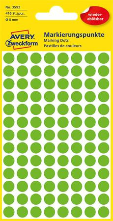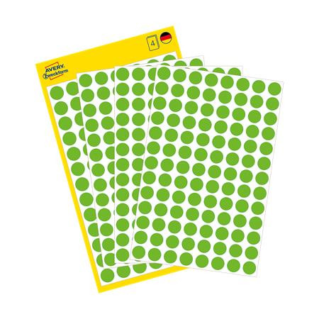 Etikett, 8 mm, kör, eltávolítható, AVERY ZWECKFORM, fűzöld, 416 etikett/csomag leírása