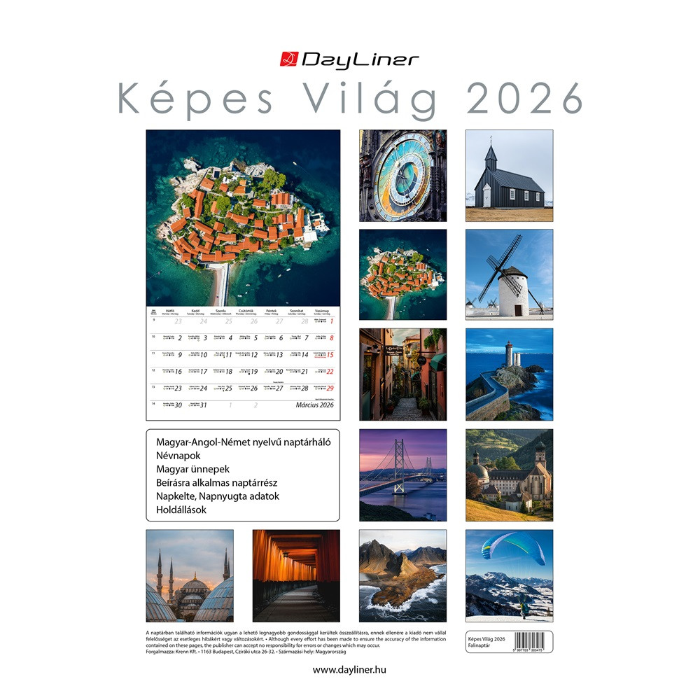 Falinaptár képes 230 x 330 mm, fehér lapokkal Képes Világ Dayliner 2026. leírása