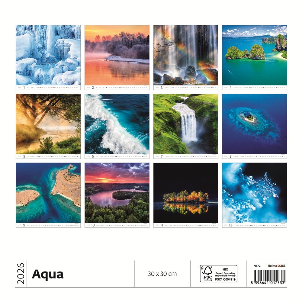 Falinaptár képes 300 x 300 mm, fehér lapokkal Aqua Dayliner 2026.