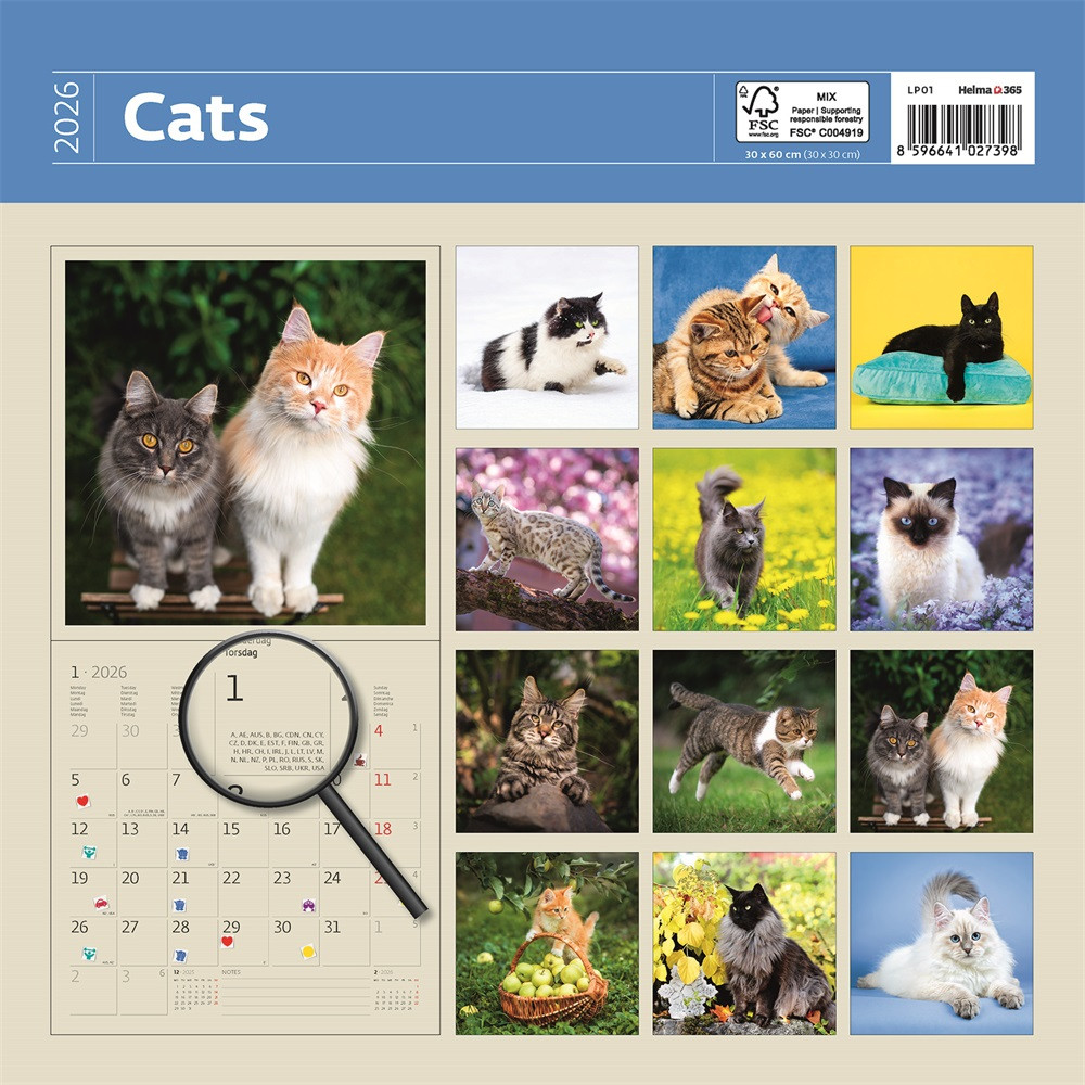 Falinaptár képes 300 x 300 mm, fehér lapokkal Cats Dayliner 2026.