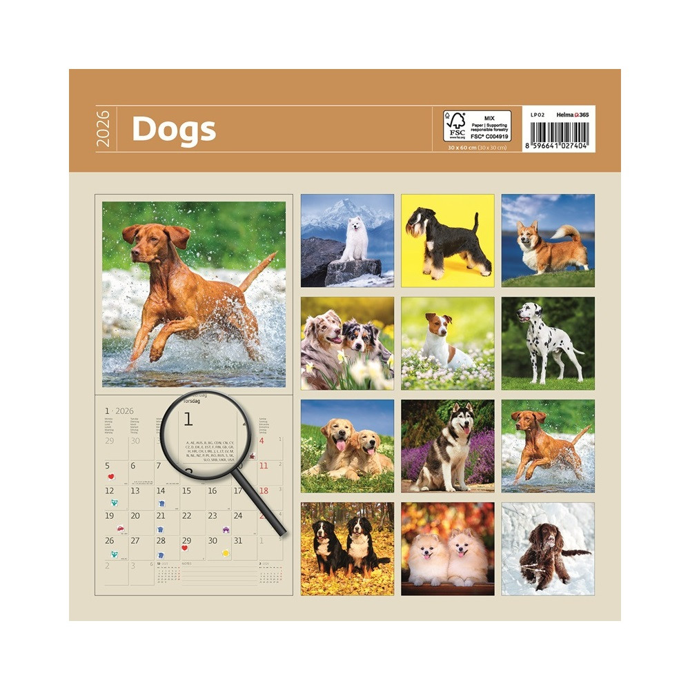 Falinaptár képes 300 x 300 mm, fehér lapokkal Dogs Dayliner 2026.