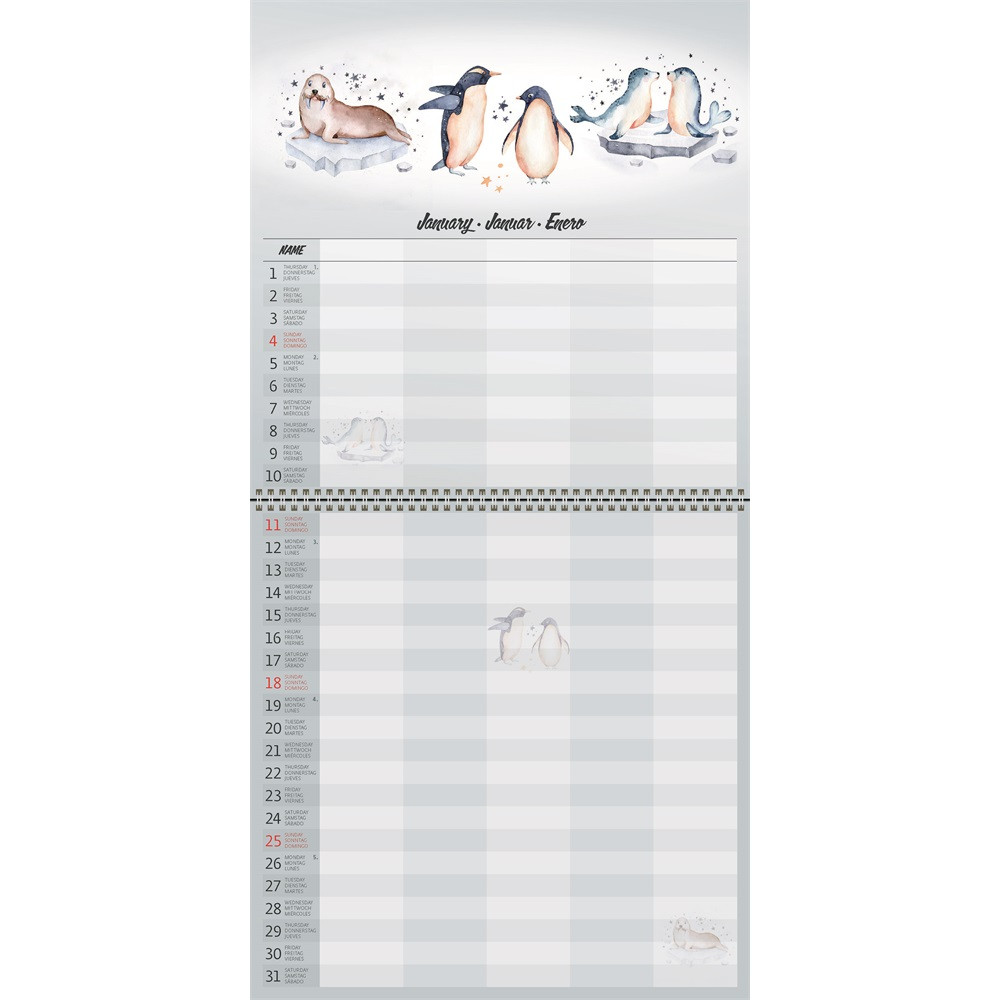 FALINAPTÁR KÉPES 300 X 300 MM, FEHÉR LAPOKKAL FAMILY PLANNER DAYLINER 2026.
