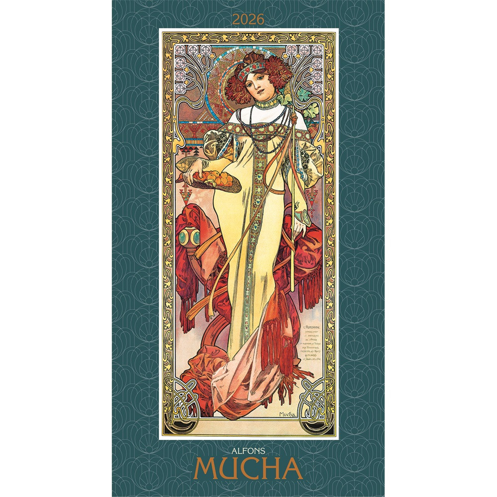 Falinaptár képes 420 × 560 mm, fehér lapokkal Alfons Mucha Dayliner 2026.