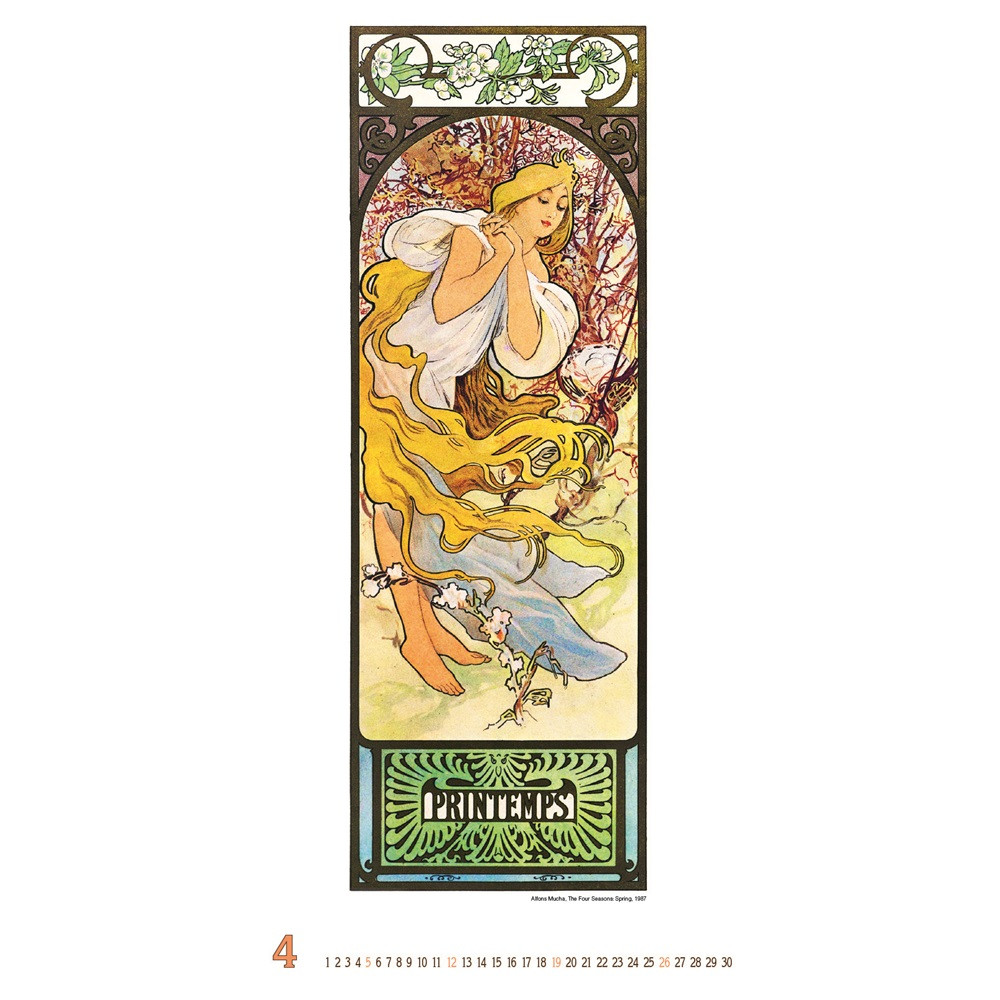 FALINAPTÁR KÉPES 420 × 560 MM, FEHÉR LAPOKKAL ALFONS MUCHA DAYLINER 2026.