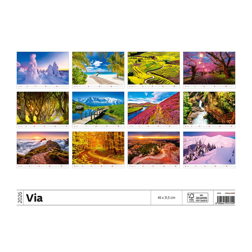 Falinaptár képes 450 × 315 mm, fehér lapokkal Via Dayliner 2026.