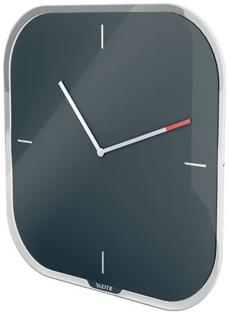 Falióra, üveg, négyzet alakú, 30x30 cm, LEITZ "Cosy", bársonyszürke