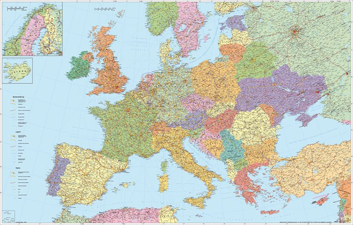 Falitérkép, 136x90 cm, fémléces, Európa autótérképe, STIEFEL leírása