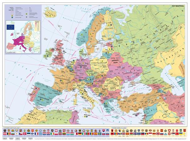 Falitérkép, 70x100 cm, fémléces, Európa országai és az Európai Unió, STIEFEL