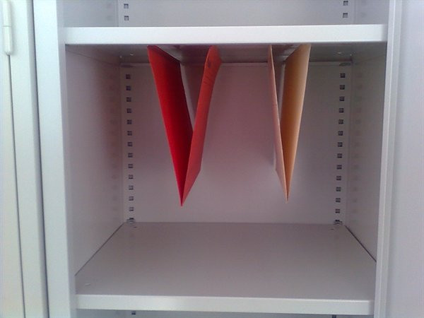 a polcok 25 mm-enként állíthatók, és a polclap alá a visszahajtásból adódóan függomappák akaszthatók.