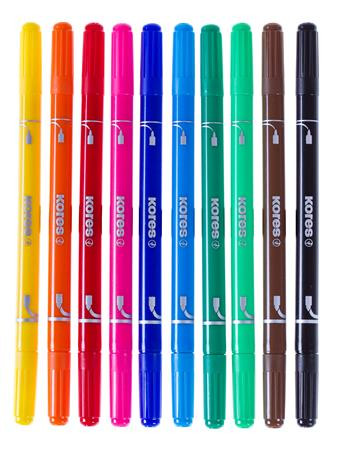 Filctoll készlet, 1-3 mm, kimosható, KORES "Korellos 2in1", 10 különböző szín