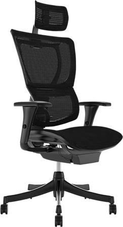 Főnöki szék, állítható karfával, feszített hálós háttámla, fekete lábkereszt "Mirus", fekete