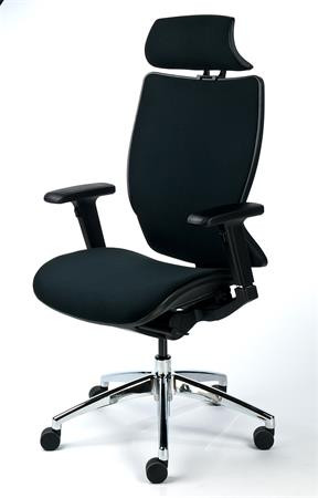 Főnöki szék, fejtámasszal, fekete szövetborítás, feszített szövet háttámla, alumínium lábkereszt, MAYAH "Crown" leírása