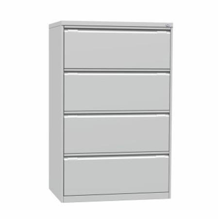 4 fiókos dupla széles (2 soros) függőmappa és karton tároló szekrény szinterezett kivitelben. Központi zárral, billenés gátlóval (egyszerre 1 fiók húzható ki)