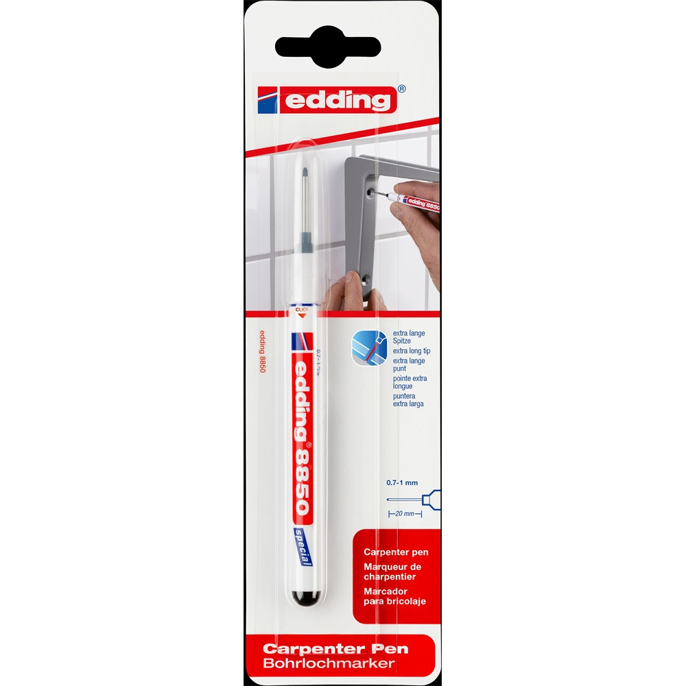 Furatmarker száraz és pormentes felületek permanens pontjelölésére szinte minden anyagon, például fém, kő, üveg, fa, műanyag. A nagyon hosszú és keskeny írócsúcs (20 mm) azt jelenti, hogy a marker különösen alkalmas összeszerelési segédeszközként, ha nehezen megközelíthető helyeken kell jelölnünk, például furatok készítésénél polcok felszerelésekor. A kerekített csúcs vonalvastagsága 1 mm. A gyorsan száradó tinta vízálló és elkenődésbiztos. Vonavastagság: 2-4 mm. Katalóguskód: 66964