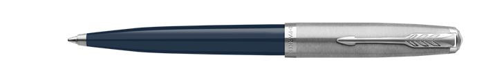 Golyóstoll, 0,7 mm rotációs, ezüst színű klip, kék tolltest, PARKER "Royal 51 Core", fekete