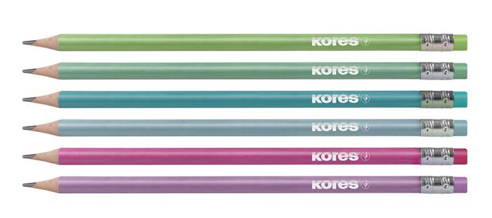 Grafitceruza radírral, HB, háromszögletű, KORES "GRAFITOS Style", vegyes metál színek