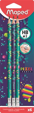 Grafitceruza radírral, HB, háromszögletű, MAPED "Pixel Party", 6 darab leírása