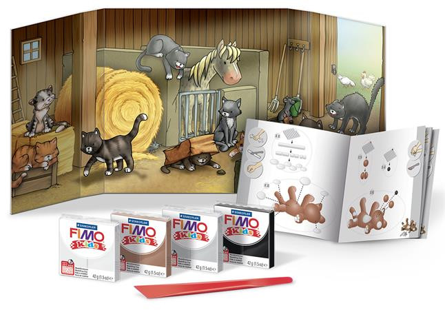 Kreatív modellező szett gyerekeknek A csomag tartalma - 4x42 g gyurma (fehér, világosbarna, világosszürke, fekete) - háttérkép, - modellező szerszám - puha, kiégethető gyurma - könnyen érthető instrukciók - égetése max. 30 percig, 110°C-on Gyártó/első EU forgalmazó elérhetősége: Staedtler Mars GmbH&Co. KG 90427 Nürnberg, Moosackerstrasse 3, Germany Info_EN.CA@staedtler.com https://www.staedtler.com/intl/en/products/fimo-modelling-clay-accessories/