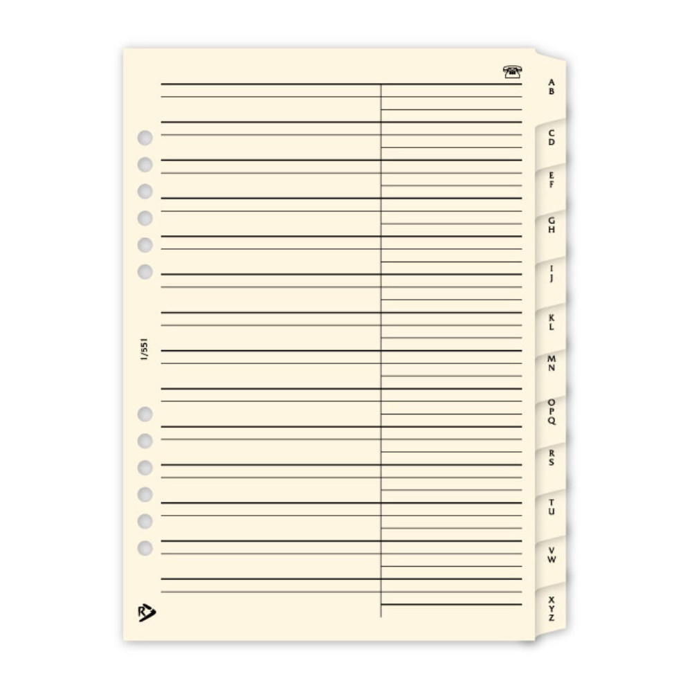 Gyűrűs kalendárium utántöltő csomag 1/551 sárga papíros telefon regiszter L mérethez Realsystem leírása
