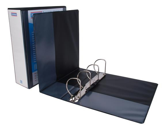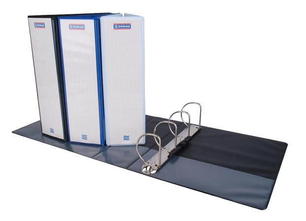 Gyűrűs könyv, panorámás, 4 gyűrű, D alakú, 80 mm, A4, PP, DONAU, fekete