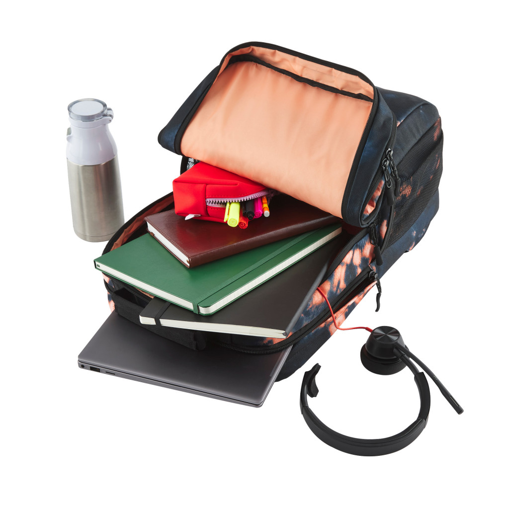 HP Campus XL Tie Dye hátizsák100% poliészter; 20 l; A 11-16 hüvelykes laptopok többségéhez használható ; Kiegészítők; 1 gyors hozzáférést biztosító zseb; 2 vizespalack-/esernyőtartó zseb; Hurok ; Kábelbújtató ;Fekete; Narancssárga Batikolt minta