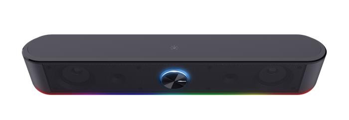 Sztereó hangszóró RGB világítással és helytakarékos kialakítással.