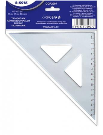 Háromszög vonalzó, műanyag, 45°, 16 cm, SAKOTA