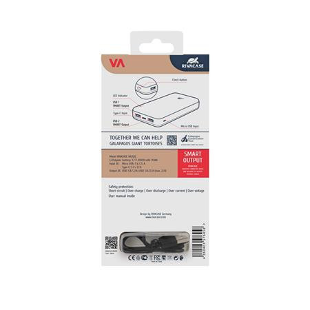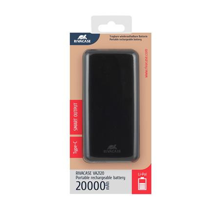 Hordozható akkumulátor, microUSB + USB-C, 20000mAh, RIVACASE "VA2120"
