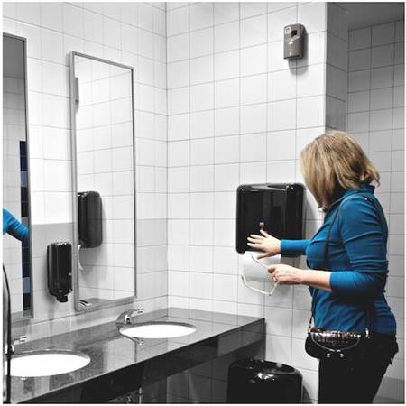 A szürke Tork illatosítóspray-adagoló a Tork Image termékcsalád számára készült. Megjelenése harmonikus a sötét színű csempével kirakott mosdókban. Minden tekintetben kiválóan működik, rendkívül praktikus és a karbantartása is egyszerű. A választható töltőanyagok pedig még hangulatosabbá varázsolhatják a mosdóhelyiséget.