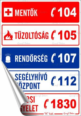 Információs matrica, 11,6x16,6 cm, "Segélyhívószámok" leírása