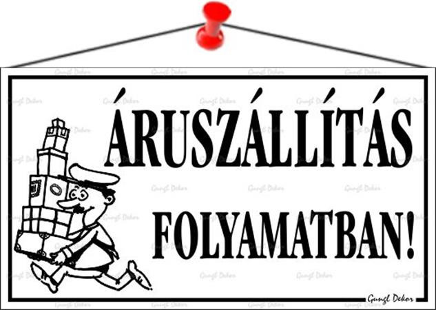 Áruszállítás folyamatban! információs tábla