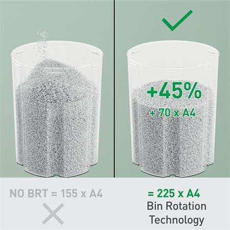 A Leitz IQ OptiMax Home Office iratmegsemmisítő nagy teljesítményű iratmegsemmisítést biztosít az egyedülálló tartályforgató (Bin Rotation Technology - BRT) technológiával.