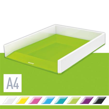 - szembetűnő, prémium minőségű, kettős színhatású Leitz irattálca fényes felülettel