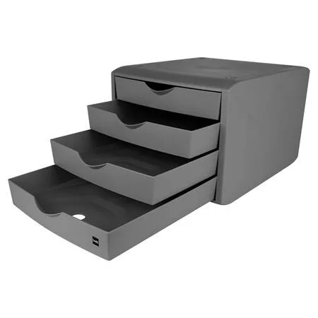 Irattároló, műanyag, 4 fiókos, HELIT "The Green Chameleon", szürke