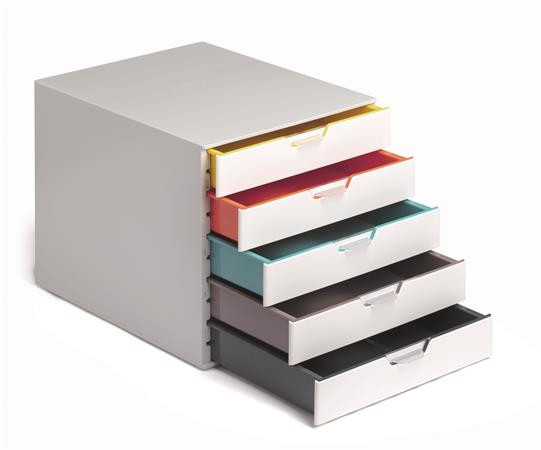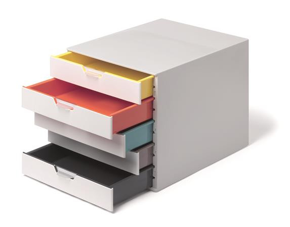 Elegáns irattároló 5 színes fiókkal, melyek segítik a rendszerezést és a tájékozódást.