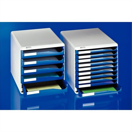 -hagyományos formájú fiókos irattárolók széles választékban -szürke alapszín színes fiókokkal -minden fiókon feliratozási lehetőség -a keretek egymásra építhetők -címketartó -méret: 285 x 290 x 355 mm